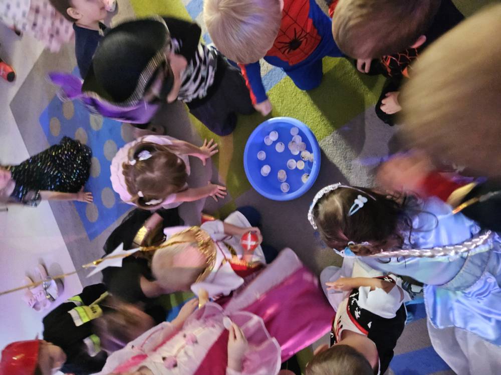 Po uroczystym rozpoczęciu balu Żabki i Słoneczka ruszyły do wspólnej zabawy przy swojej ulubionej muzyce. Tańcom nie było końca! Ciocie przygotowały także andrzejkowe wróżby, które wzbudziły wśród dzieci ogromne zainteresowanie. Wróżby były pełne humoru i pozytywnych niespodzianek, a każde dziecko mogło poczuć się jak prawdziwy odkrywca tajemnic.
