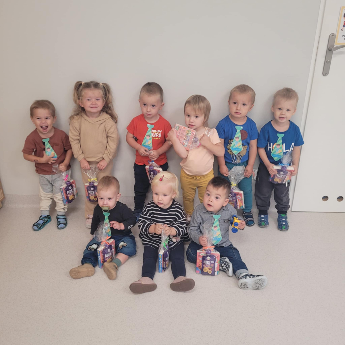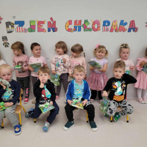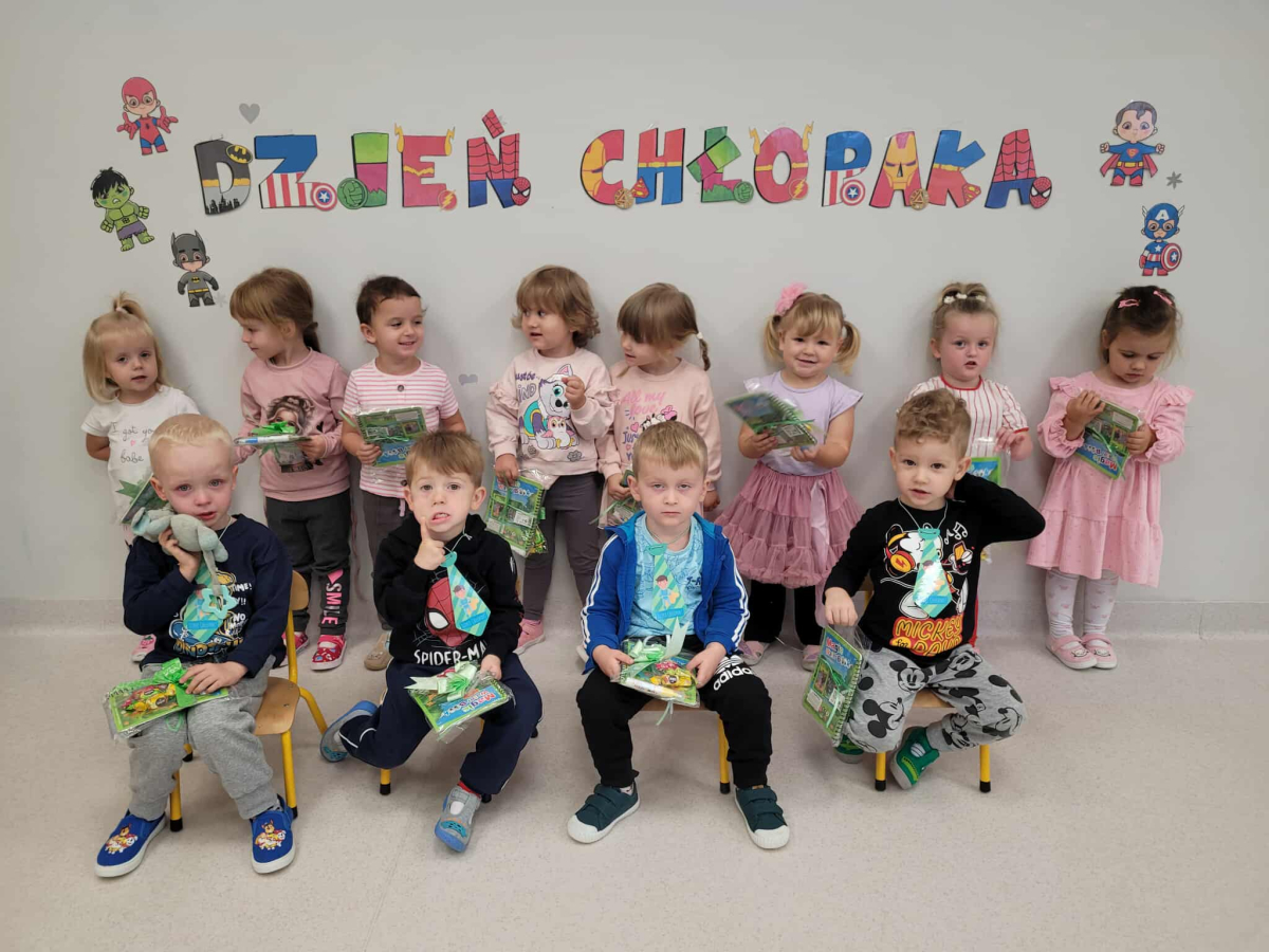 Od samego rana na naszych chłopców czekało wiele miłych niespodzianek. Dziewczynki z pomocą cioć złożyły kolegom serdeczne życzenia oraz wręczyły drobne upominki, przygotowane specjalnie na tę okazję. Nie zabrakło też uścisków i radosnych okrzyków "Wszystkiego najlepszego!". W każdej grupie odbyły się wspólne zabawy integracyjne, konkursy i tańce. Atmosfera była pełna radości i przyjaźni, a uśmiechy nie schodziły z twarzy naszy dziaciaczków.