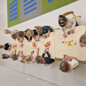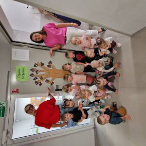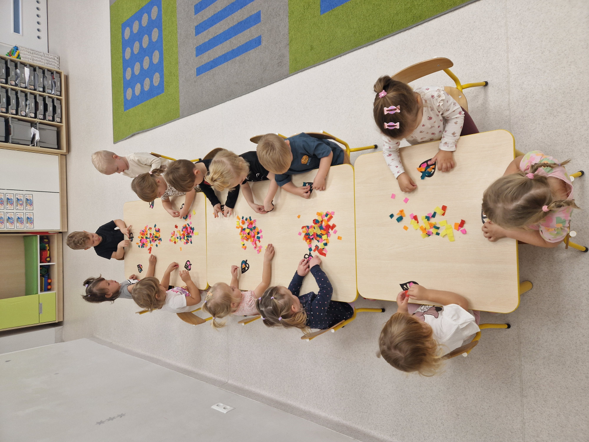 Nie zabrakło także aktywności plastycznych - dzieci wyklejały kolorowe witraże w kształcie liści. Dzień zakończyliśmy wspólnym spacerem po okolicy, podczas którego dzieci rozpoznawały różne gatunki drzew, zbierały liście i uczyły się jak dbać o przyrode na co dzień.
