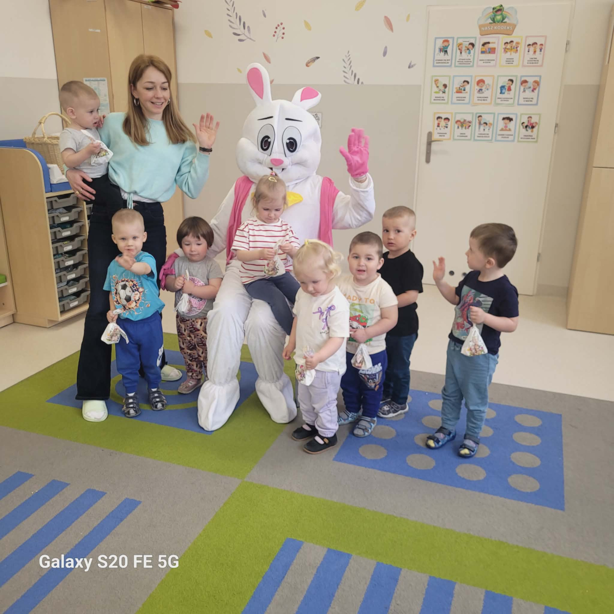 W przedświątecznym czasie dzieci z Samorządowego Klubu Dziecięcego spotkała miła niespodzianka - odwiedził je Wielkanocny Zajączek. Maluchy z radością wzięły udział w poszukiwaniu ukrytych upominków oraz kolorowych jajeczek.